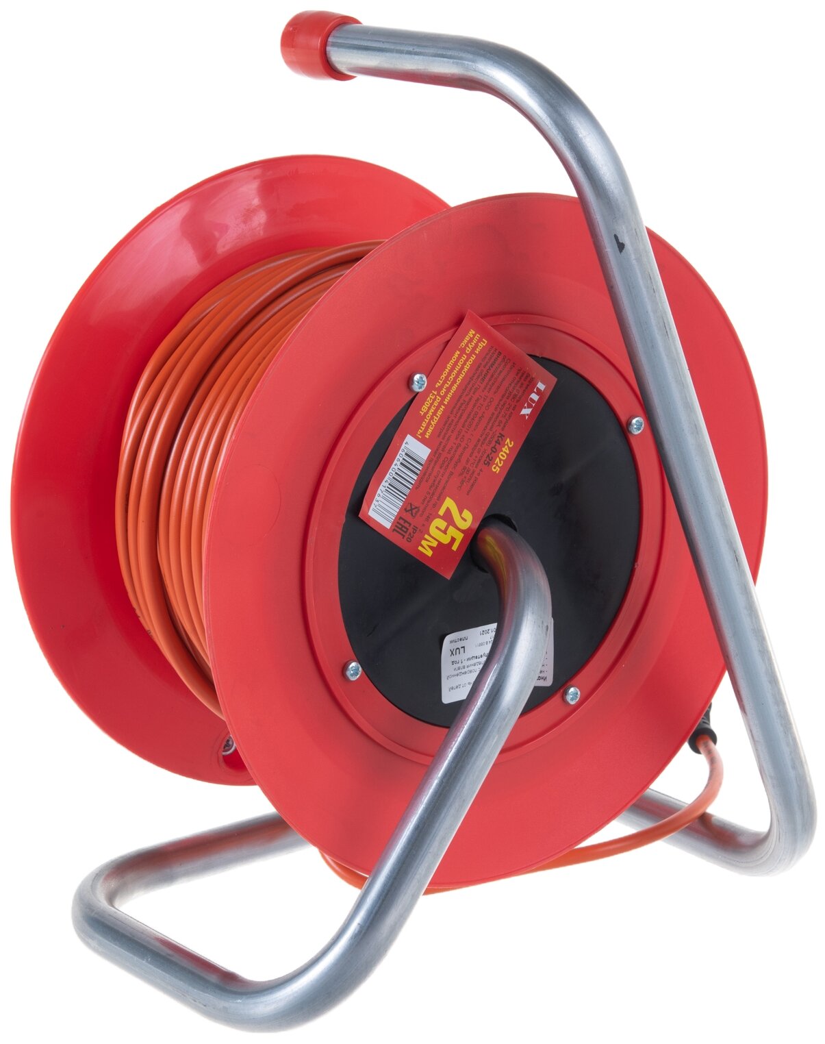 Удлинитель силовой на катушке LUX ELECTRIC LUX К4-О-25 ПВС 2x0.75 25м, 4 встр. розетки б/з 24025