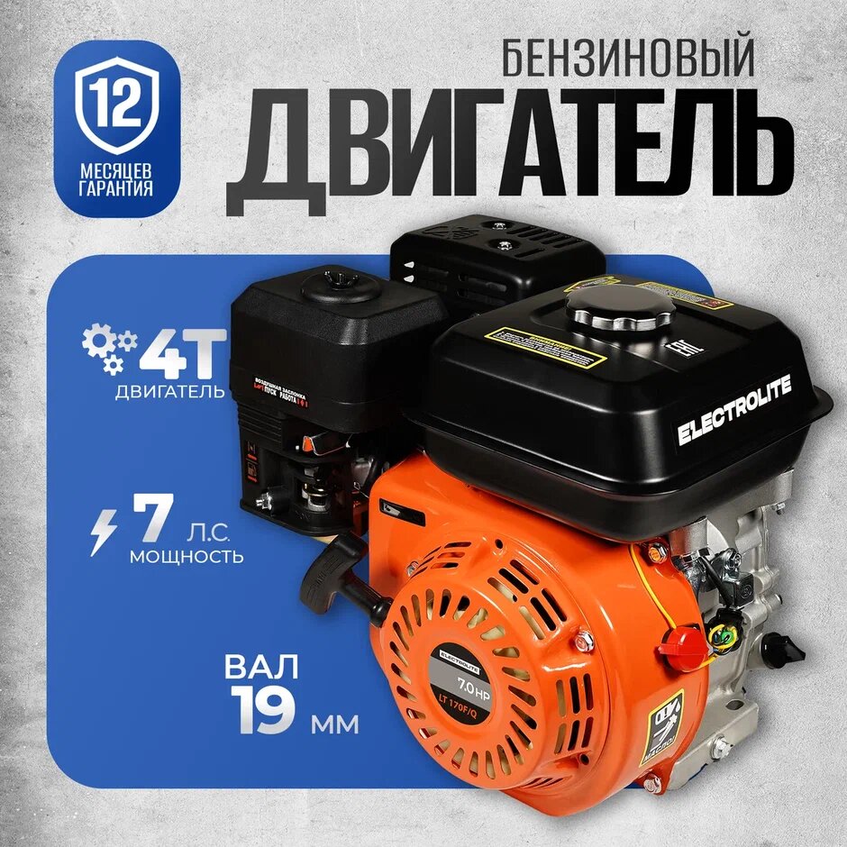 Двигатель для мотоблока / Двигатель / Двигатель на мотоблок / Мотор для мотоблока ELECTROLITE LT 170F/Q (7 л.с., Вал 19мм) интересное: