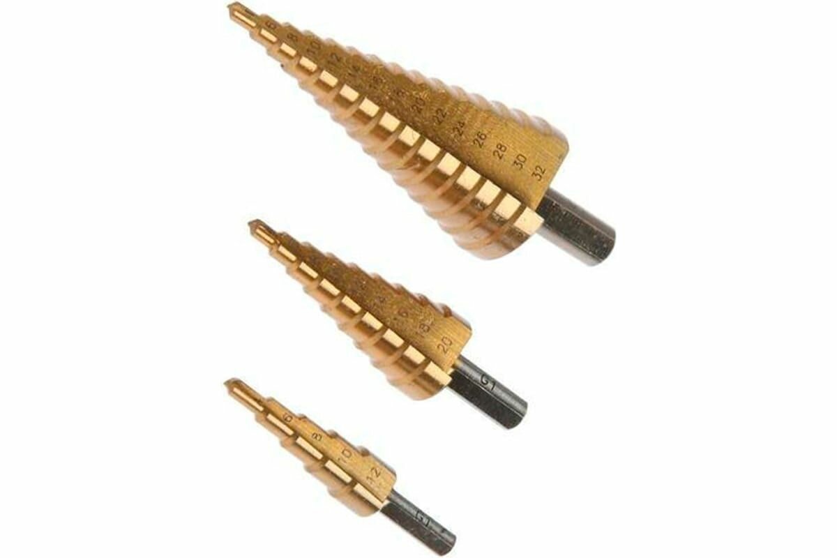 Набор сверл ступенчатых G1, 3 предмета, 4-12 мм; 4-20 мм; 4-32 мм, СТМ-529