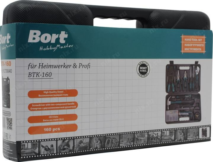 Набор ручного инструмента Bort BTK-160, 160 предметов, высококачественная сталь, кейс Bort 4714001 .
