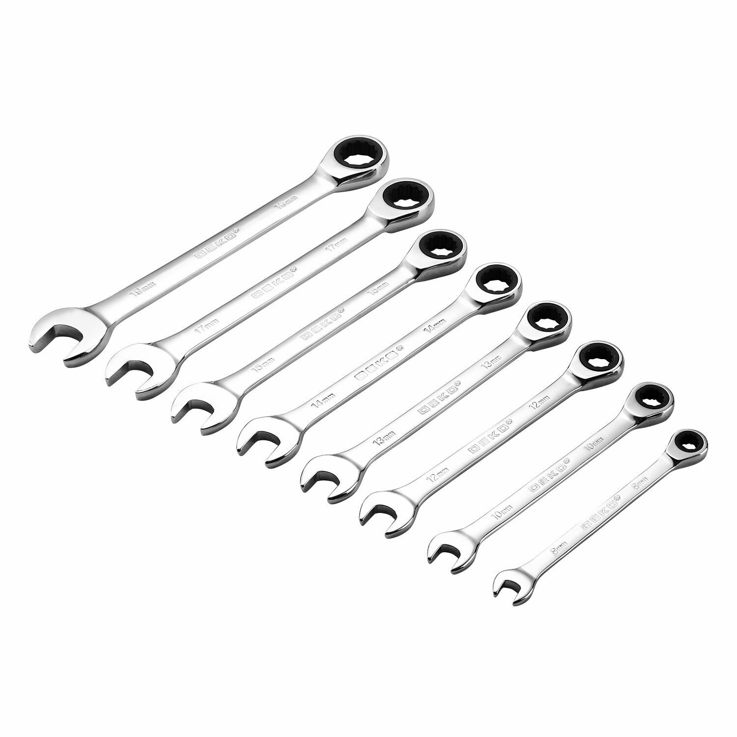 Ключи комбинированные трещоточные Deko RW01, 8 - 19 мм, набор 8 шт
