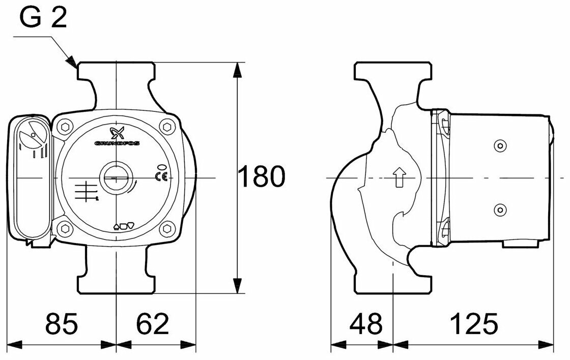 Циркуляционный насос Grundfos UPS 32-80, 180мм, 95906443