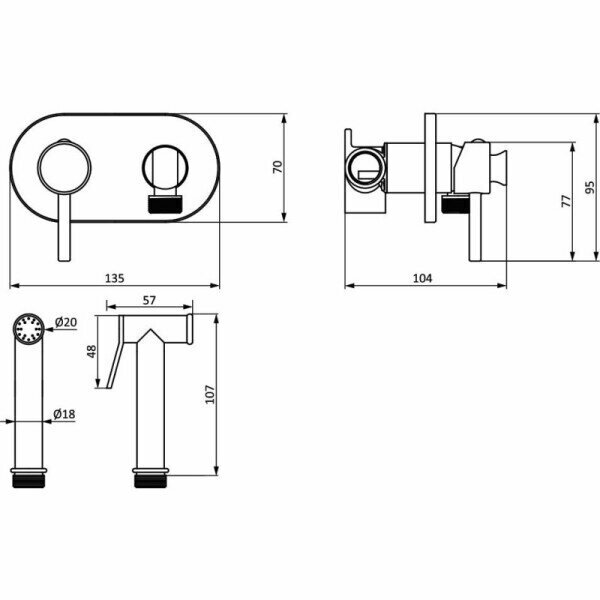 | Комплектация | Смеситель / гигиенический душ / держатель для душа / шланг / декоративные розетки / комплект креплений / инструкция |