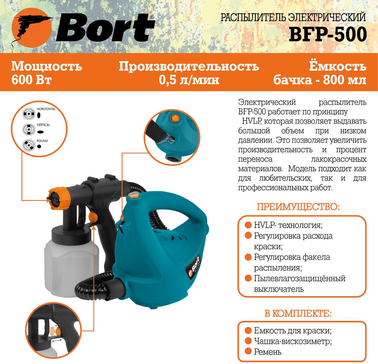 Краскопульт Bort BFP-500 [98291032] интересное: