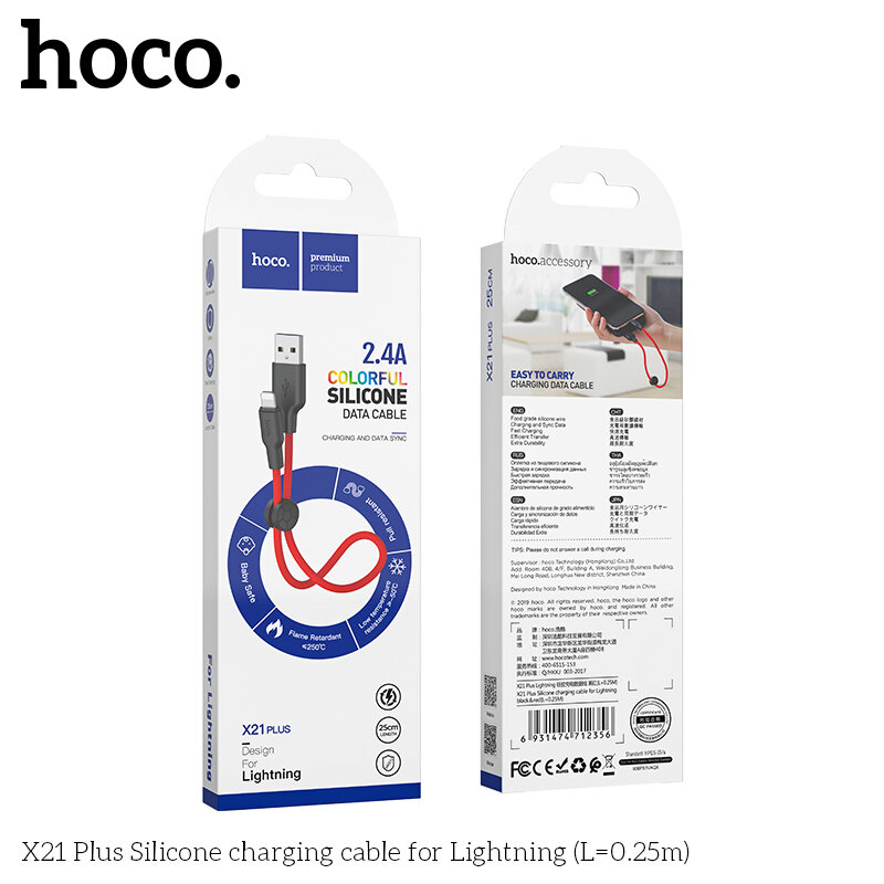 USB Кабель Micro, HOCO, X21 Plus, 0.25м, силиконовый, черно-красный