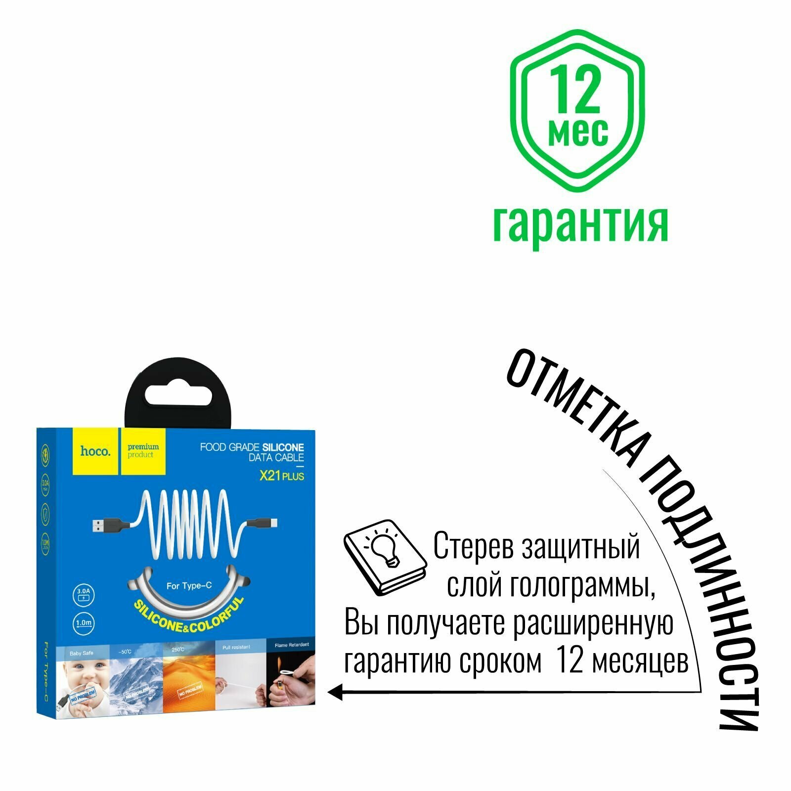 Силиконовый Usb кабель Type-C Hoco X21 Plus/ 1 метр/ "Провод type-c силиконовый"