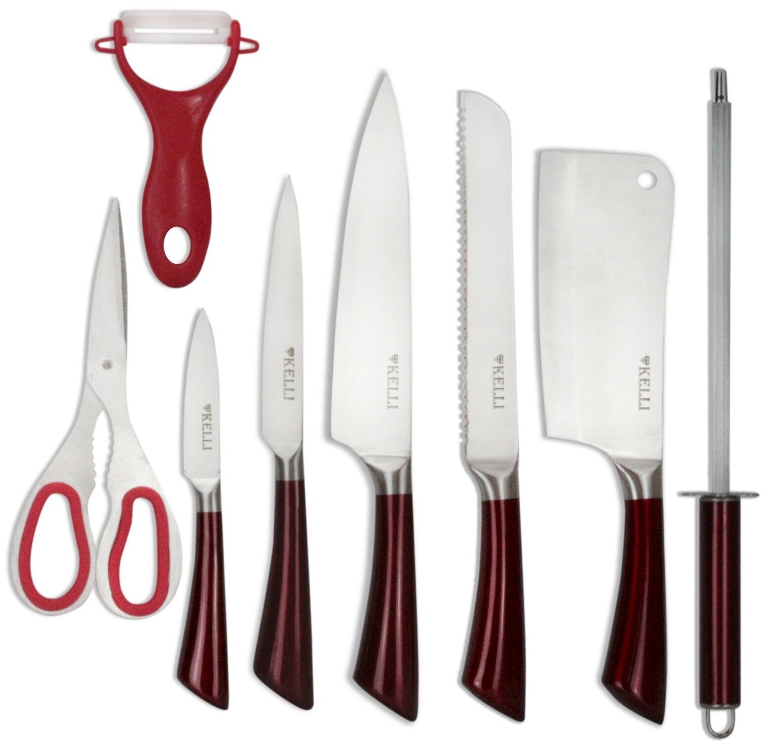 Набор ножей Kelli Kl-2084, 9 предметов, красный