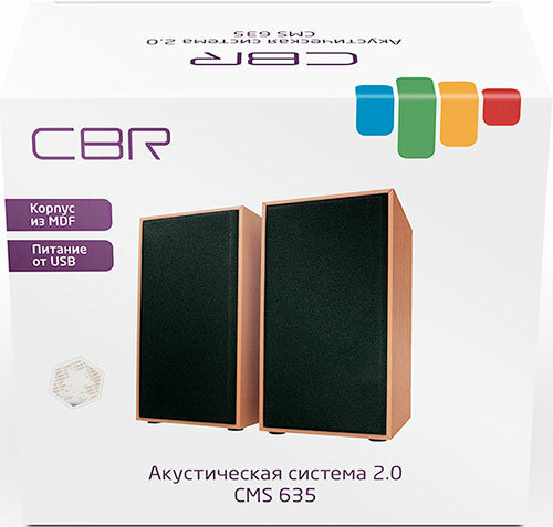 Cbr CMS 635 Brown, Акустическая система 2.0, питание USB, 2х3 Вт 6 Вт RMS , материал корпуса MDF, 3.5 мм линейный стереовход, регул. громк., длина кабеля 1 м, цвет светло-коричневый
