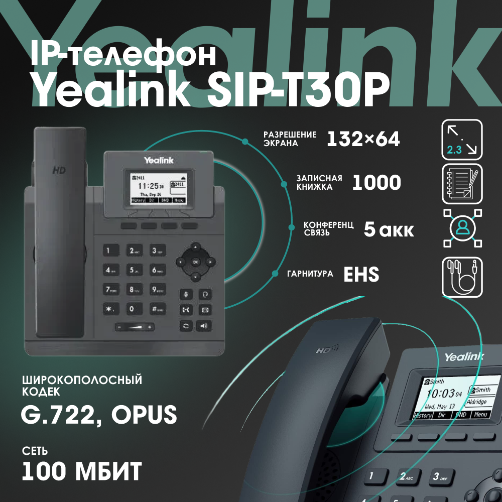 VoIP-телефон Yealink SIP-T30P, 1 SIP-аккаунт PoE (SIP-T30P without PSU)