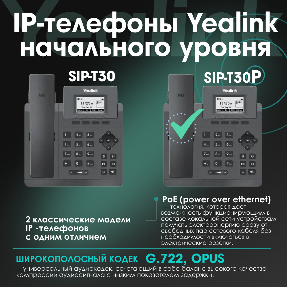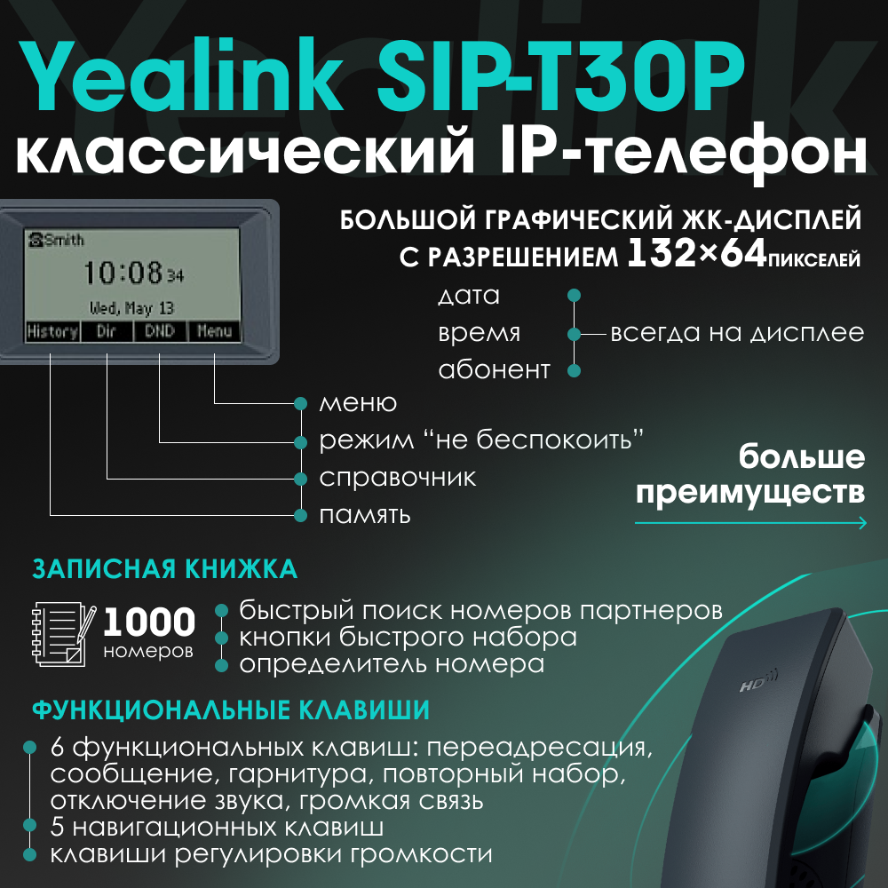 СохранитьIP-телефон Yealink SIP-T30P, 1 аккаунт, PoE, без БП интересное: