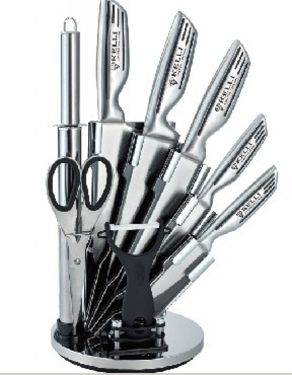 Ножи KELLI из нержавеющей стали 9 предметов на крутящейся подставке