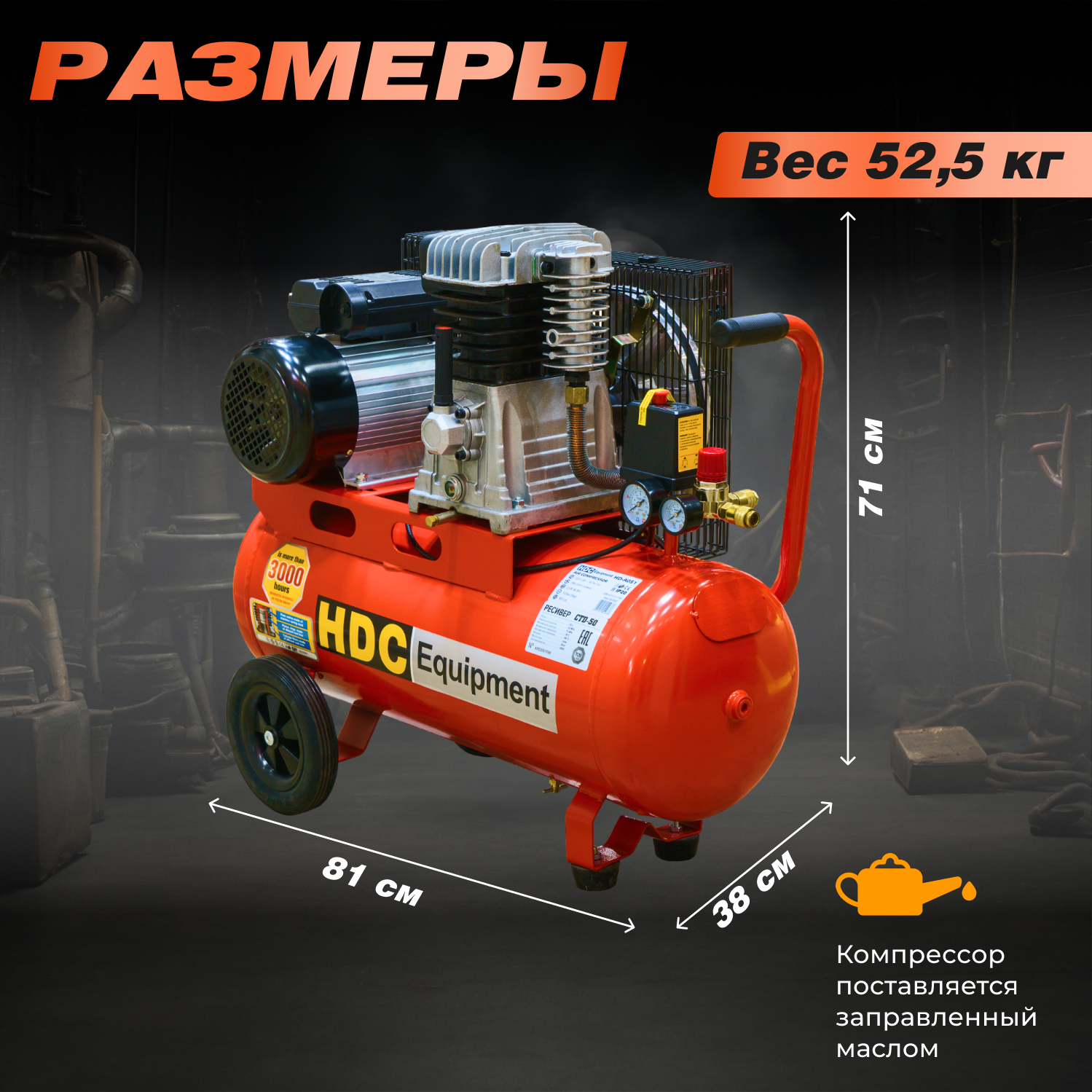 Компрессор масляный HDC HD-A051, 50 л, 2.2 кВт