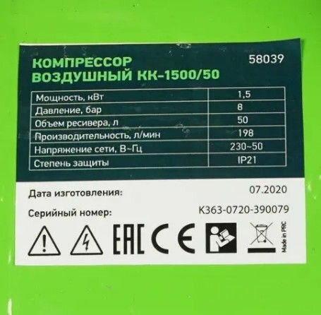 | Дополнительная информация | компрессор - 1 шт; фильтр воздушный - 1 шт; колеса - 1 шт; антивибрационная опора - 1 шт; крепеж - 1 шт; инстурукция - 1 шт |