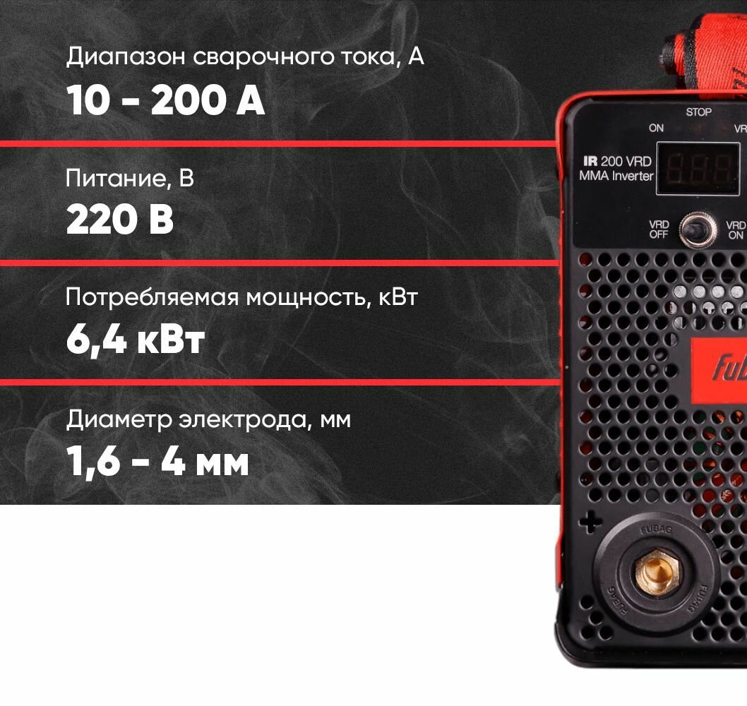 Сварочный аппарат Fubag IR 200 VRD инвертор ММА DC 8.6кВт