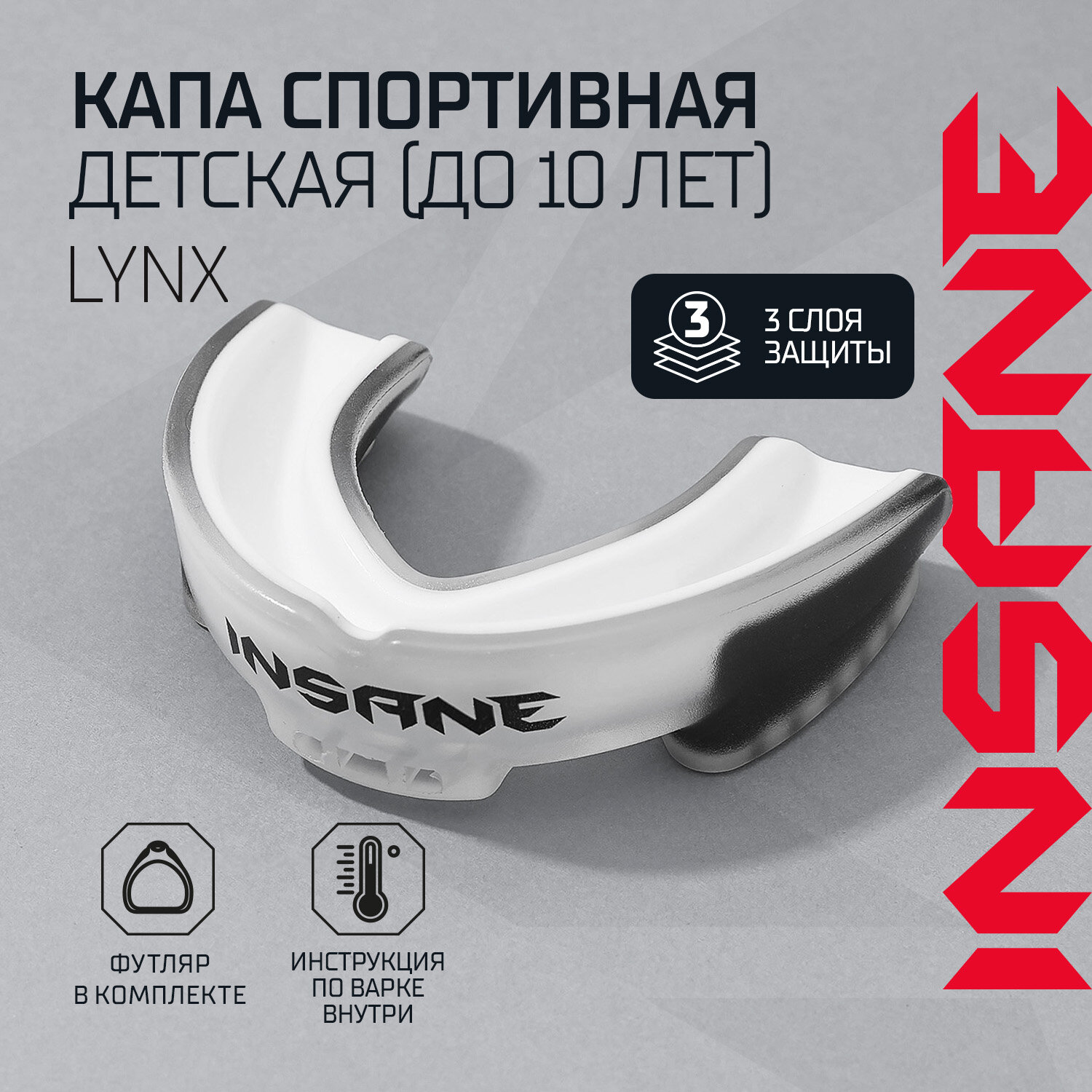 Купить Капа Insane 1-челюстная Lynx, эва, белый/черный, детский