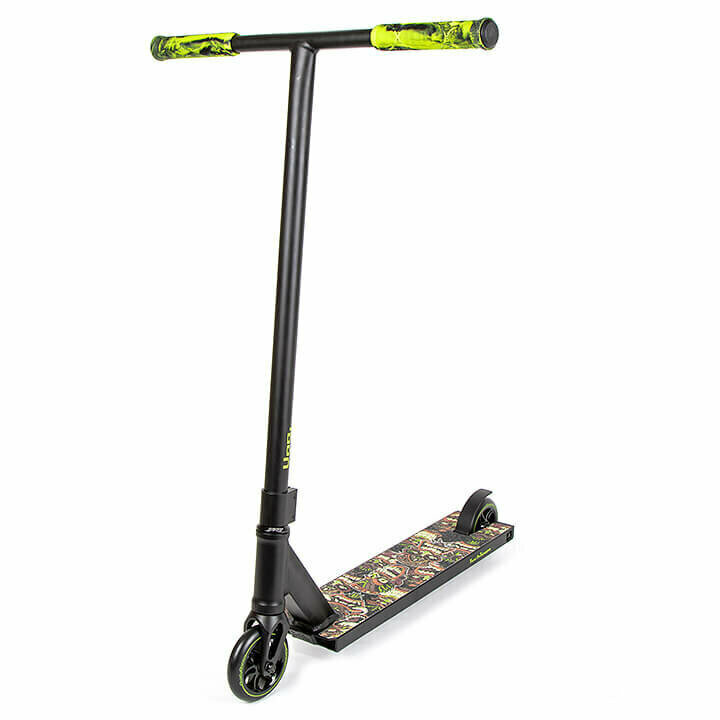 | Плюсы: | Высокий руль, широкая длинная дека!!! Длинные грипсы, при трюках они очень удобные. Для райдеров среднего уровня этот самокат самое то.