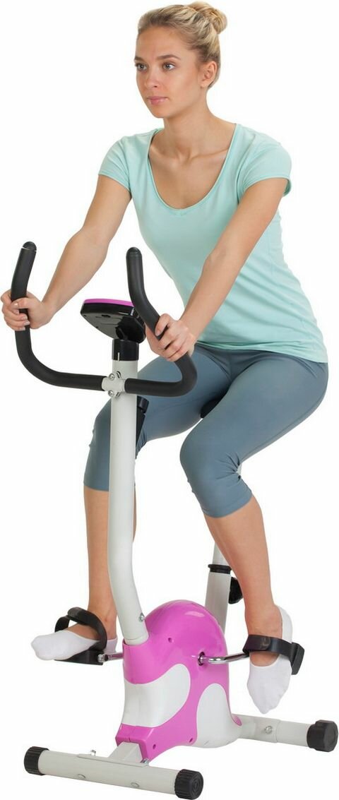 | Плюсы: | Отличный велотренажер для домашнего использования. Можно менять высоту ручки, сложность кручения педалей, на мониторе отображается количество проехавших километров, время и сожженные калории. |