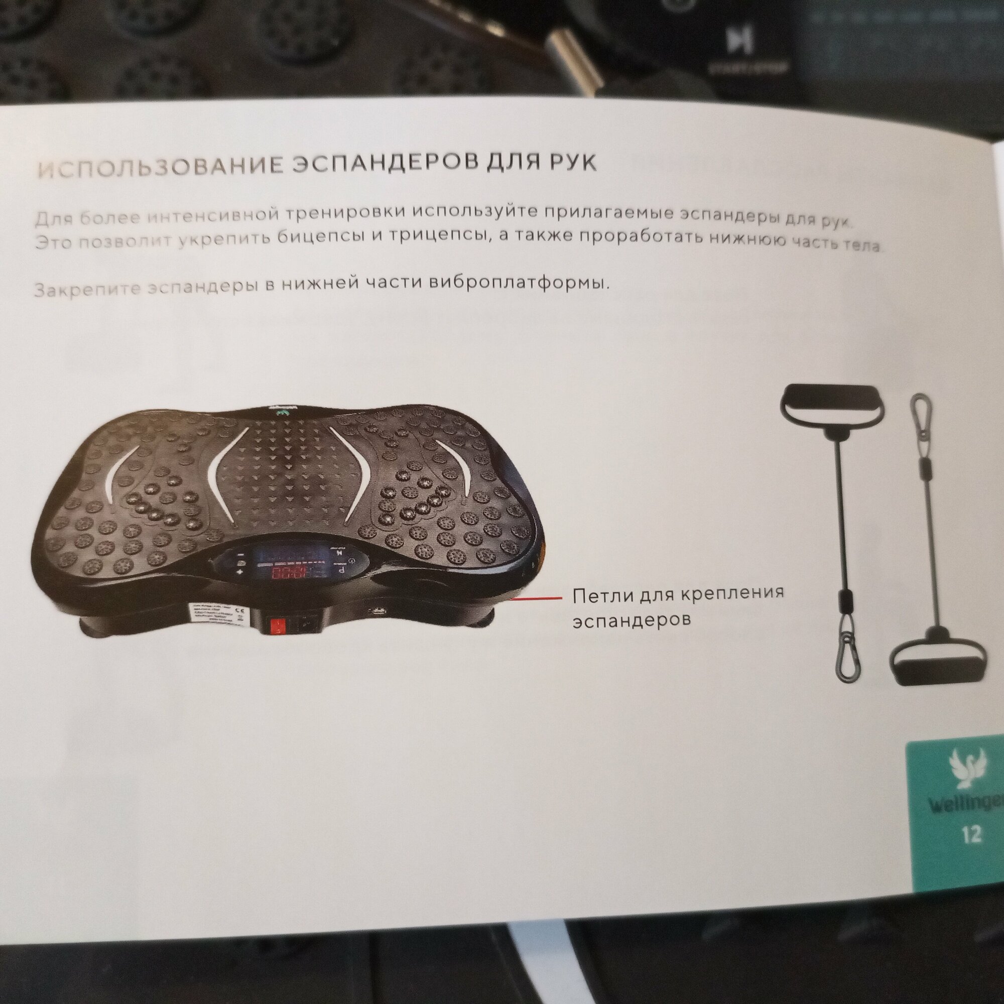 | Подробная комплектация | Инструкция - 1 шт.; Шнур питания - 1 шт.; Виброплатформа - 1 шт.; Пульт управления - 1шт.; Эспандеры - 2 шт.; QR-код с курсом правильного питания - 1 шт. |