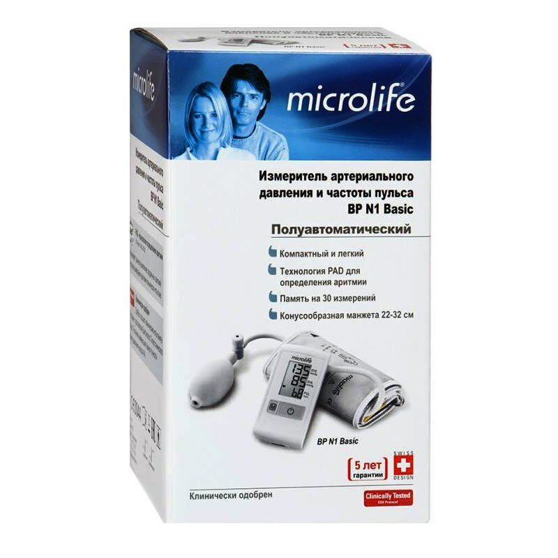 Microlife, тонометр BP N1 Basic полуавтоматический, 1 шт.
