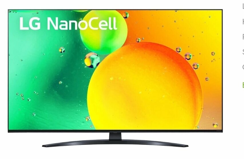 LG LED Телевизор 4K Ultra HD LG 43NANO766QA NanoCell Гарантия производителя.