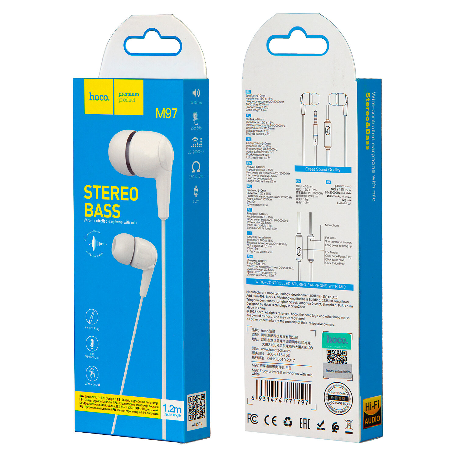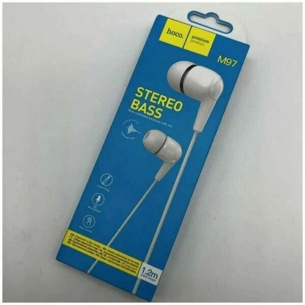 Наушники-вкладыши внутриканальные проводные Hoco M97 с микрофоном белые и черные.