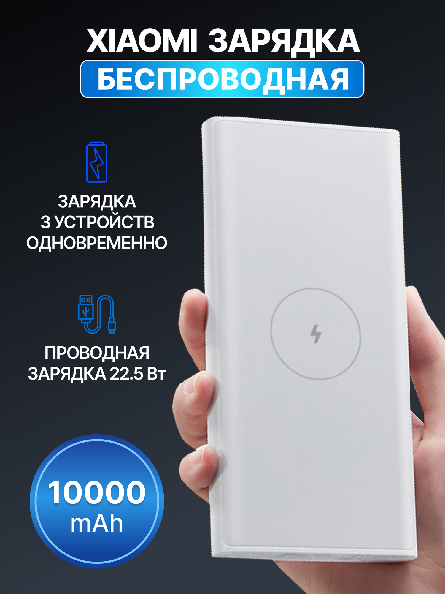 Портативный аккумулятор Xiaomi Mi Wireless Power Bank, 10000 mAh, белый