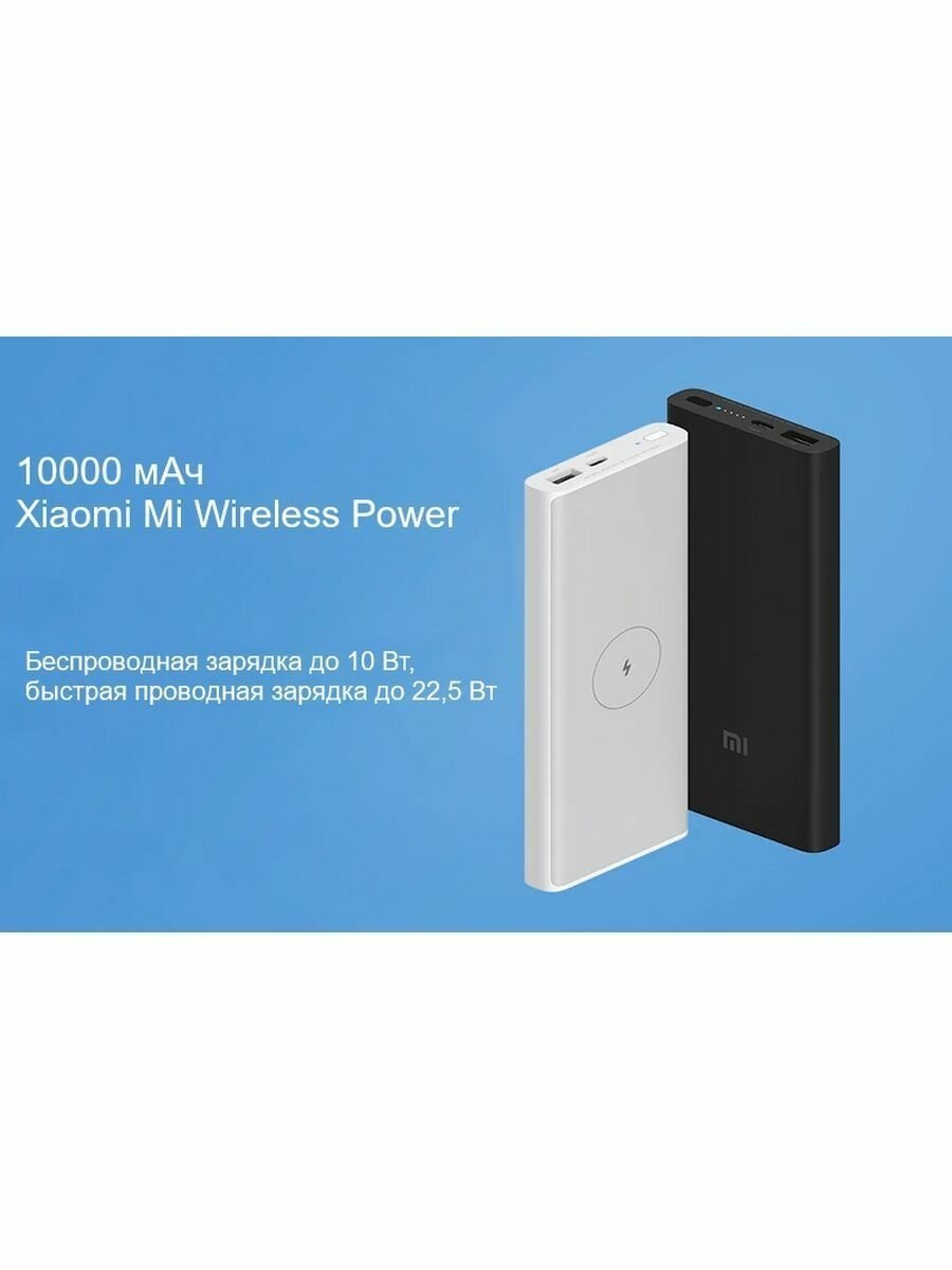��нешний аккумулятор Xiaomi Power Bank Wireless 10W 10000 Mah черный (WPB15PDZM)