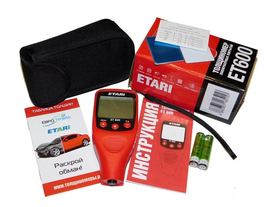 Толщиномер ETARI ET-600 2 года гарантии; чехол, батарейки и калибровочные пластины в комплекте