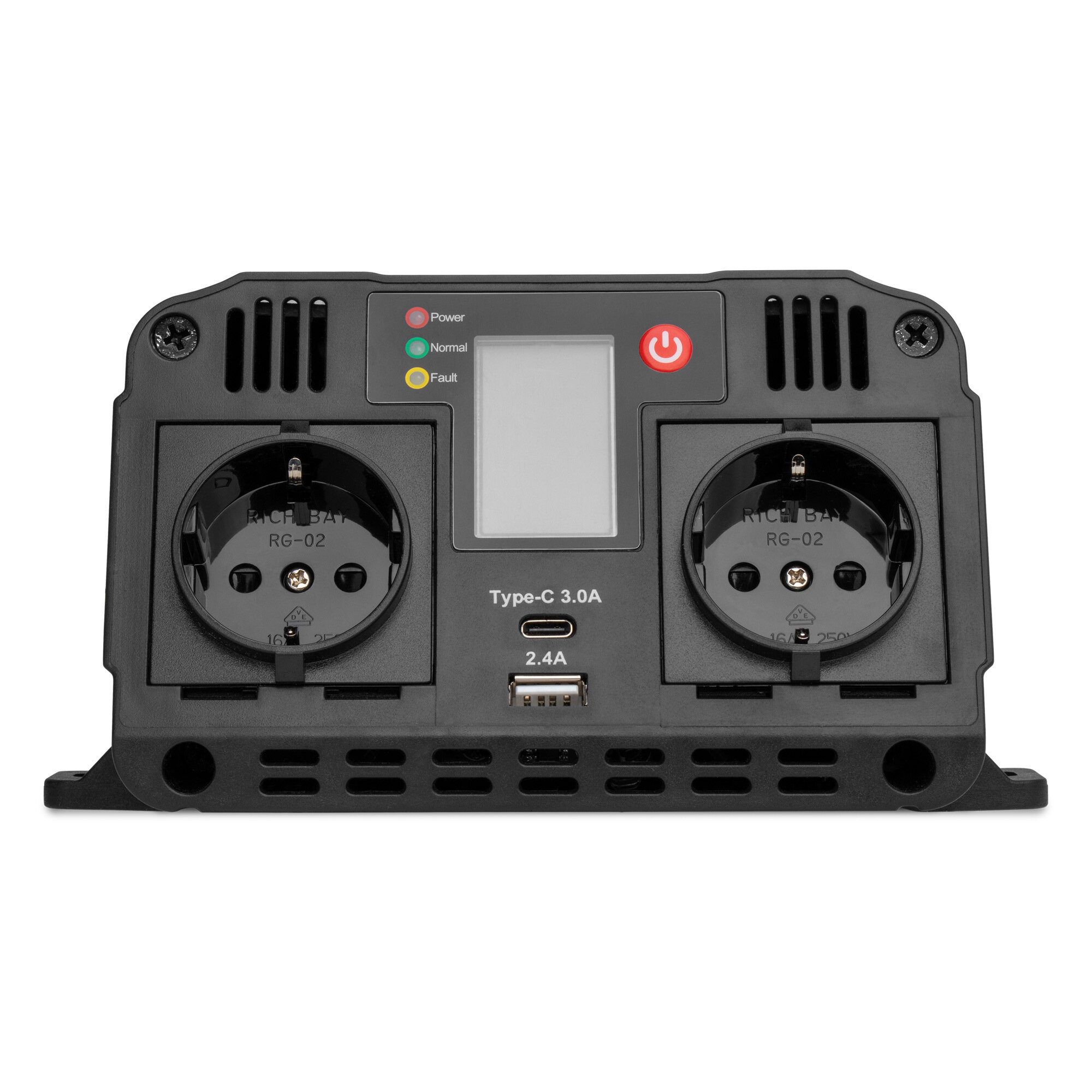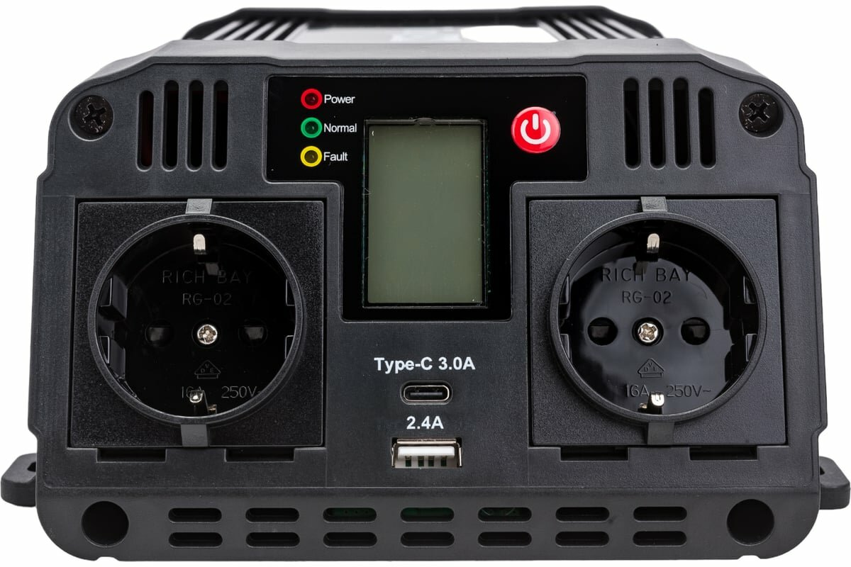 | Комплектация | Автомобильный инвертор TopON TOP-PI1202 1200W 2 розетки, USB, Type-C, LCD экран, пиковая мощность 2400W Черный |