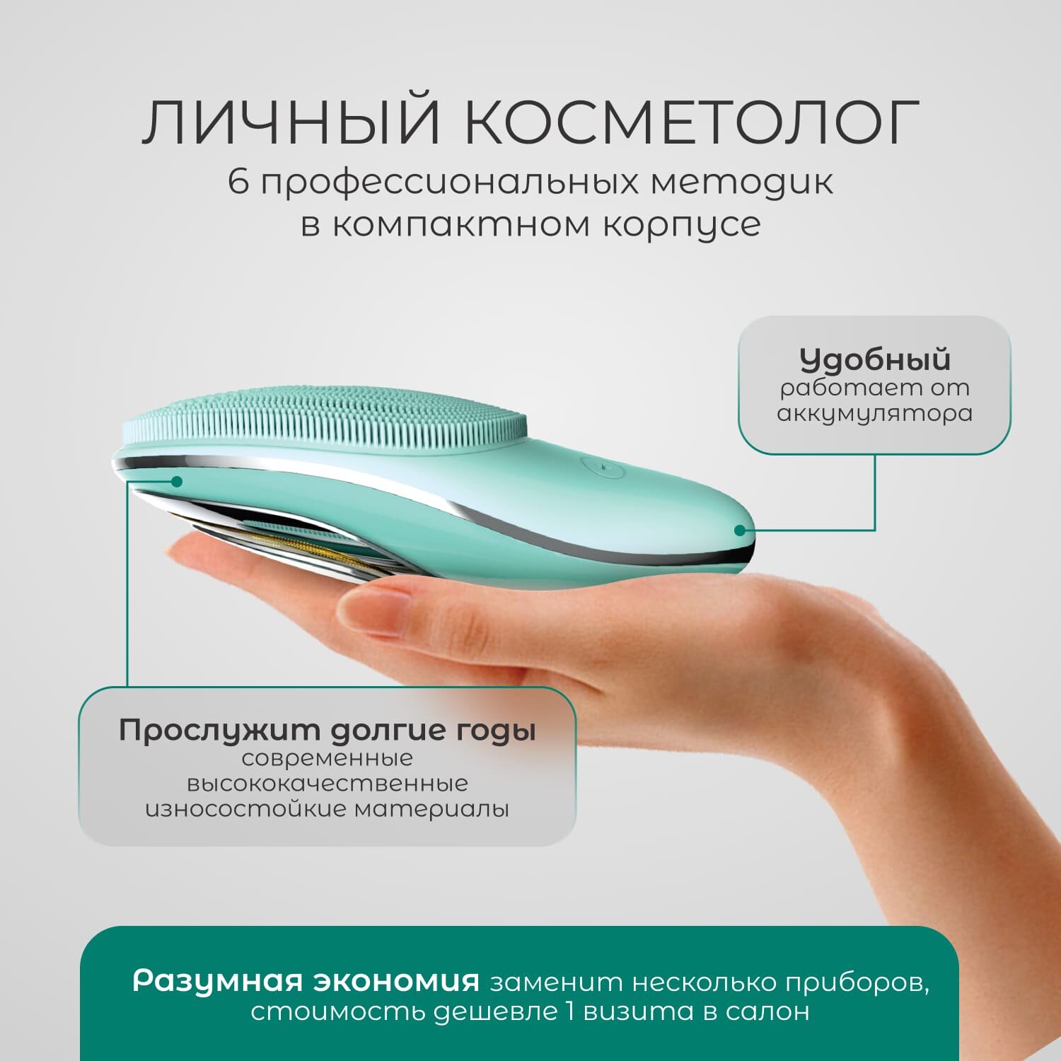 | Принцип работы | электрическая щетка / микротоки / ионизация / вибрация / светотерапия |