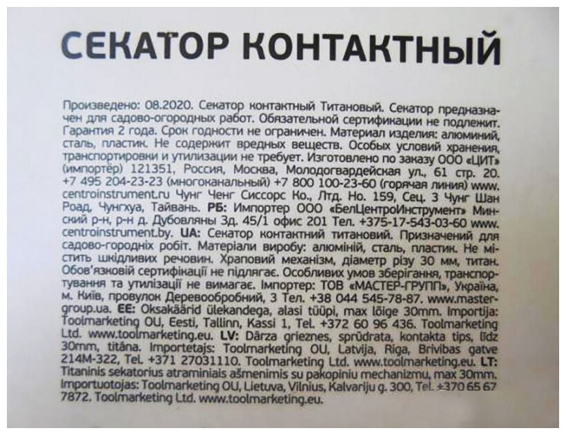 | Минусы: | Привезли дешевый секатор, без храпового механизма |