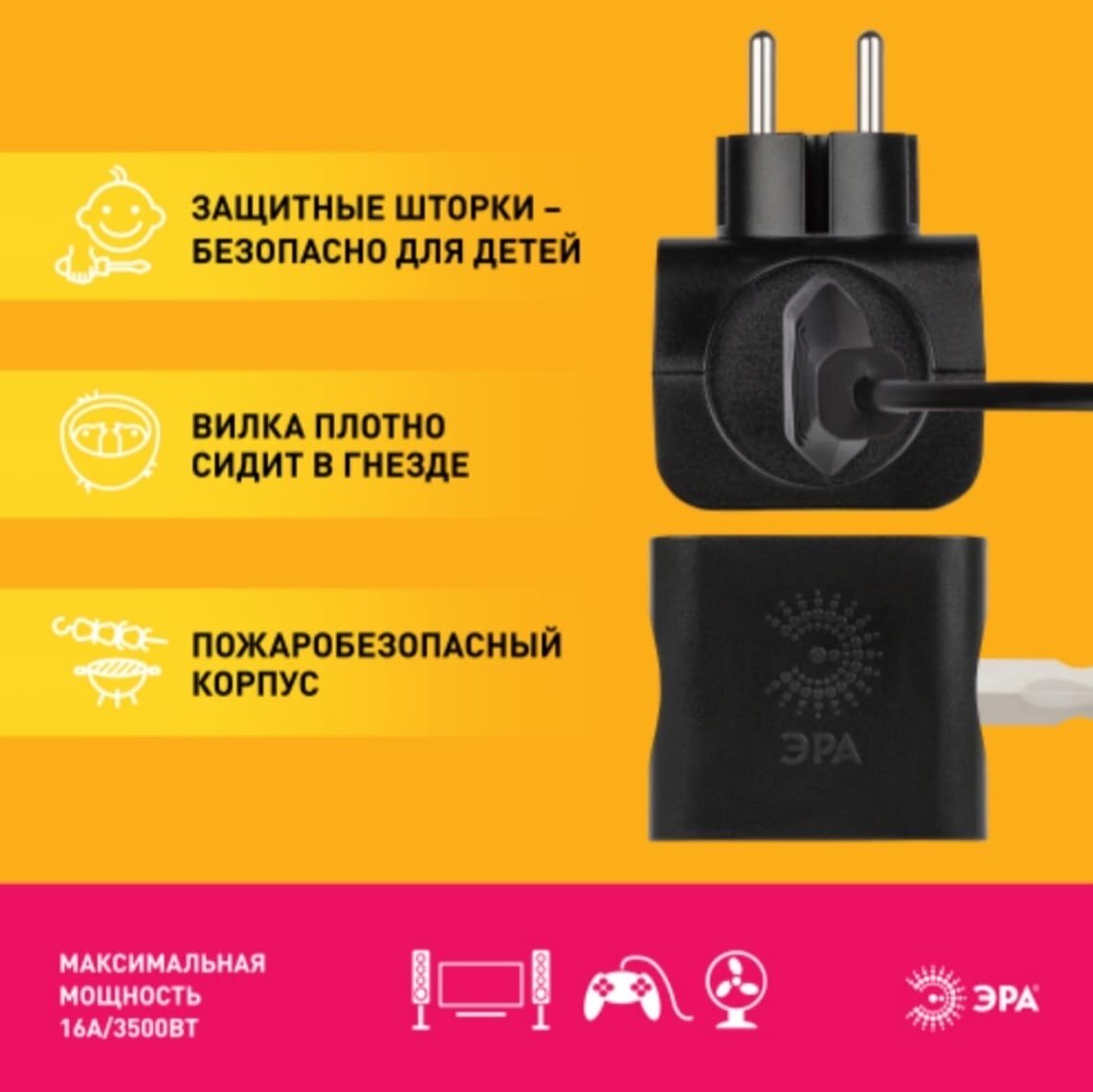 Тройник Эра "SP-4",черный, 4 разъема, негорючий поликарбонат, 16А/3680 Вт