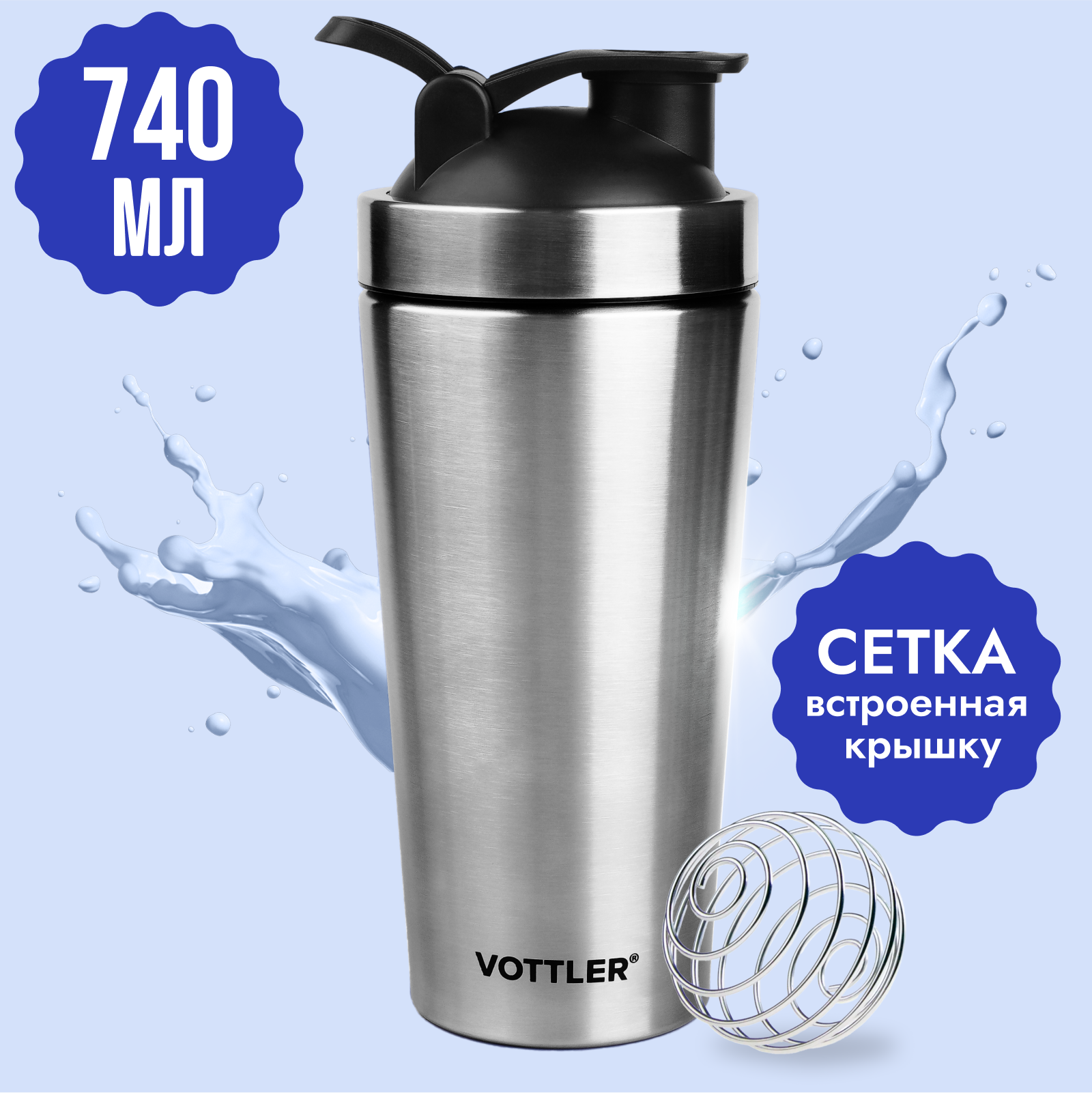 СохранитьШейкер спортивный металлический с венчиком VOTTLER стальной для спортивного питания интересное: