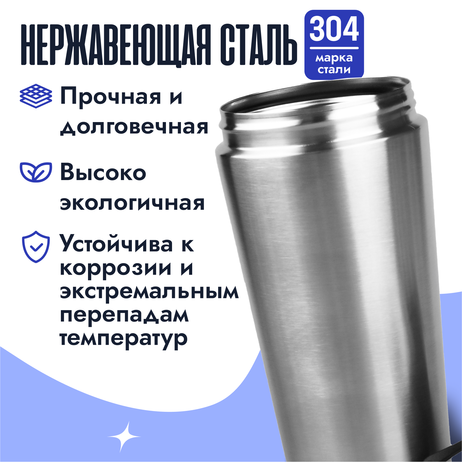 | Дополнительная информация | для холодных напитков, для горячих напитков; материал венчика: нержавеющая сталь; не содержит: парабены, фталат, бисфенол; диаметр горловины: 9 см |
