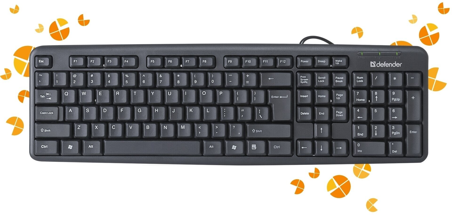 Клавиатура проводная DEFENDER Element HB-520, разъем PS/2, 104 клавиши + 3 дополнительные клавиши, черная, 45520