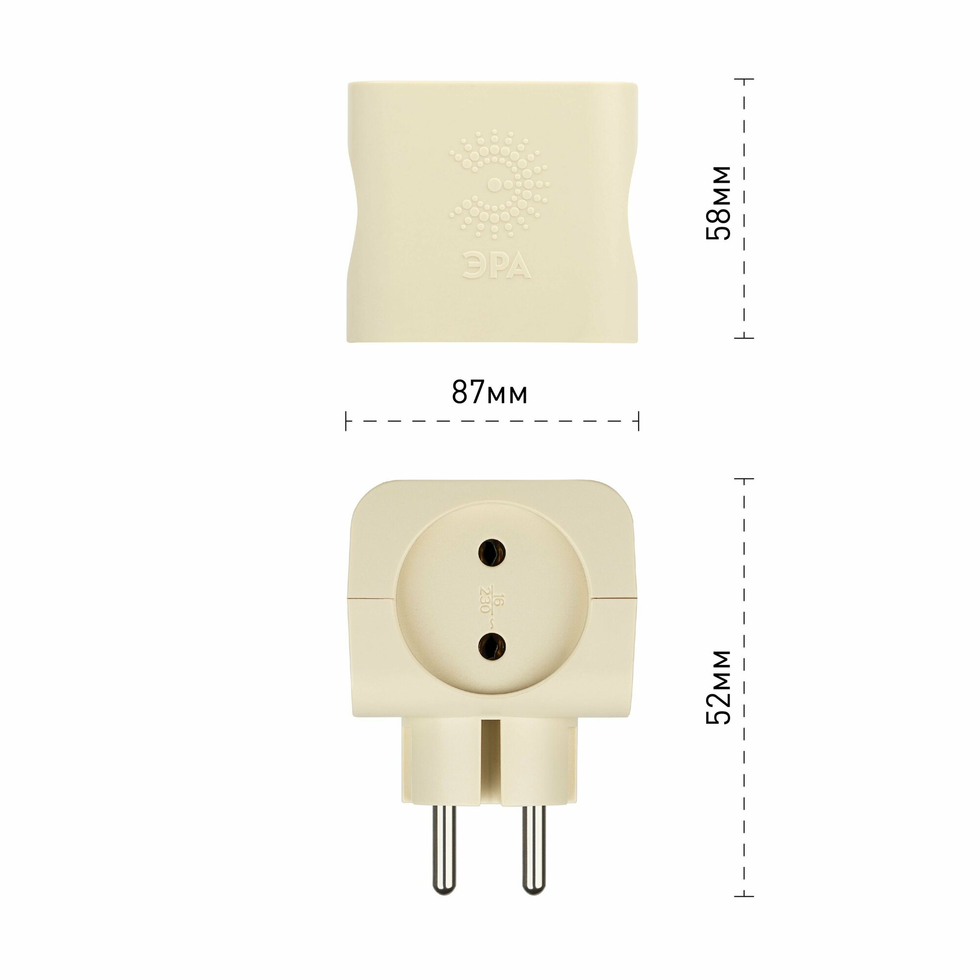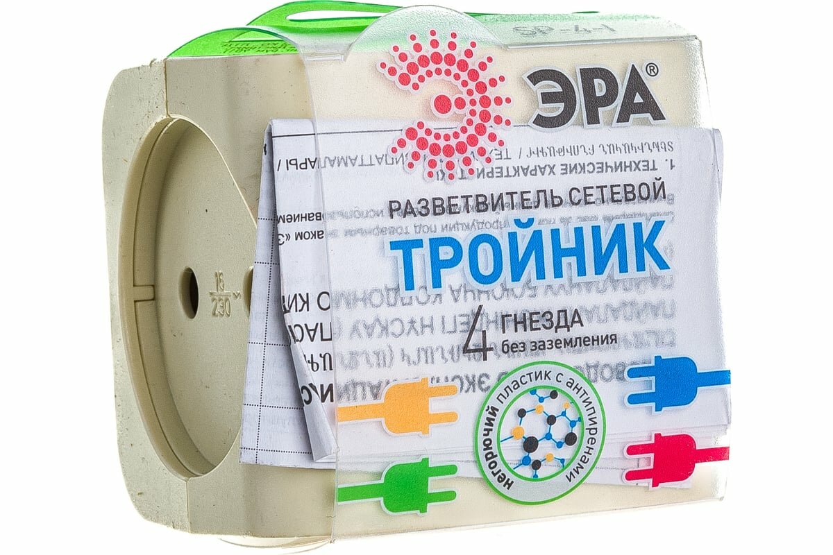 Разветвитель ЭРА SP-4 16 А слоновая кость 1 шт. 4 шт. 100 г
