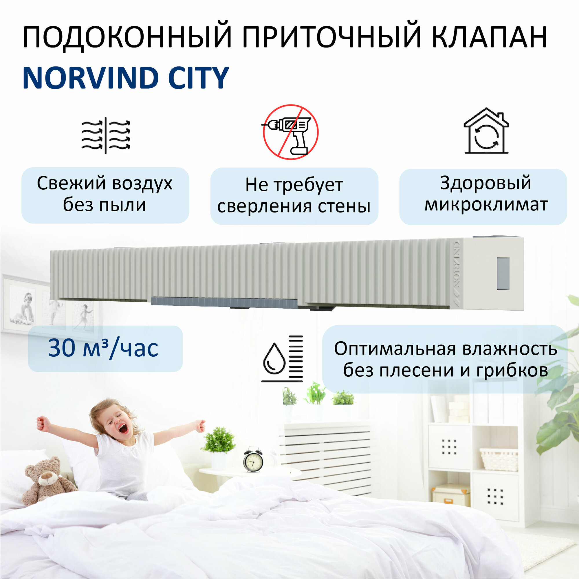 СохранитьNorvind Подоконный приточный вентиляционный клапан City, 30 м3/ч Nvd_city . интересное: