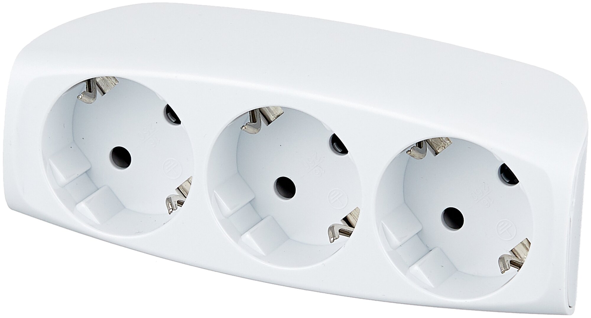 Тройник для розетки электрический с заземлением 16А, белый