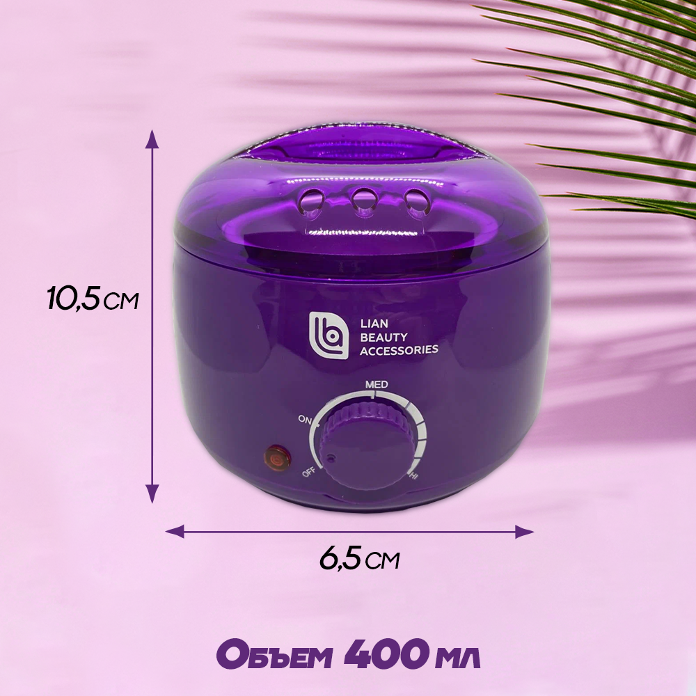LiAN Beauty Accessories Воскоплав баночный фиолетовый/Воскоплав для депиляции/Разогреватель воска/Нагреватель для воска(пасты для депиляции с термостатом) 400 мл