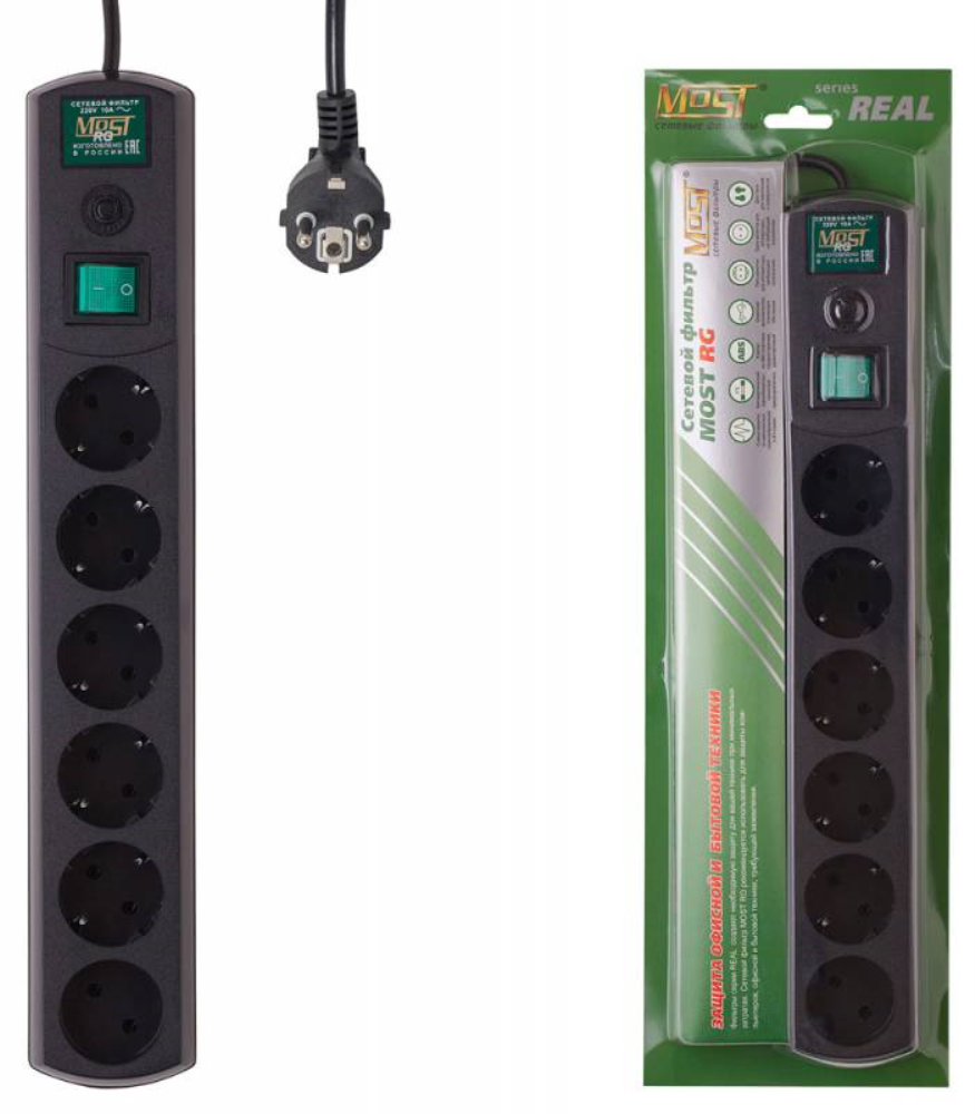 Сетевой фильтр MOST REAL RG-ч, 2м 6 розеток