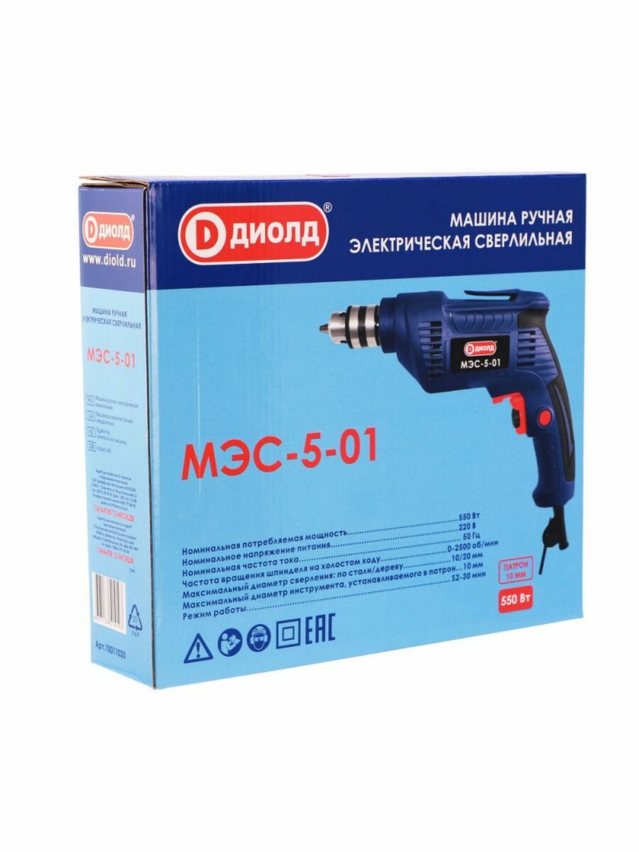 Дрель безударная сетевая диолд МЭС-5-01 (ключевой патрон), 550 Вт, 24Нм, реверс, 0-2500 об/мин, патрон 1,5-10 мм, российский производитель Россия