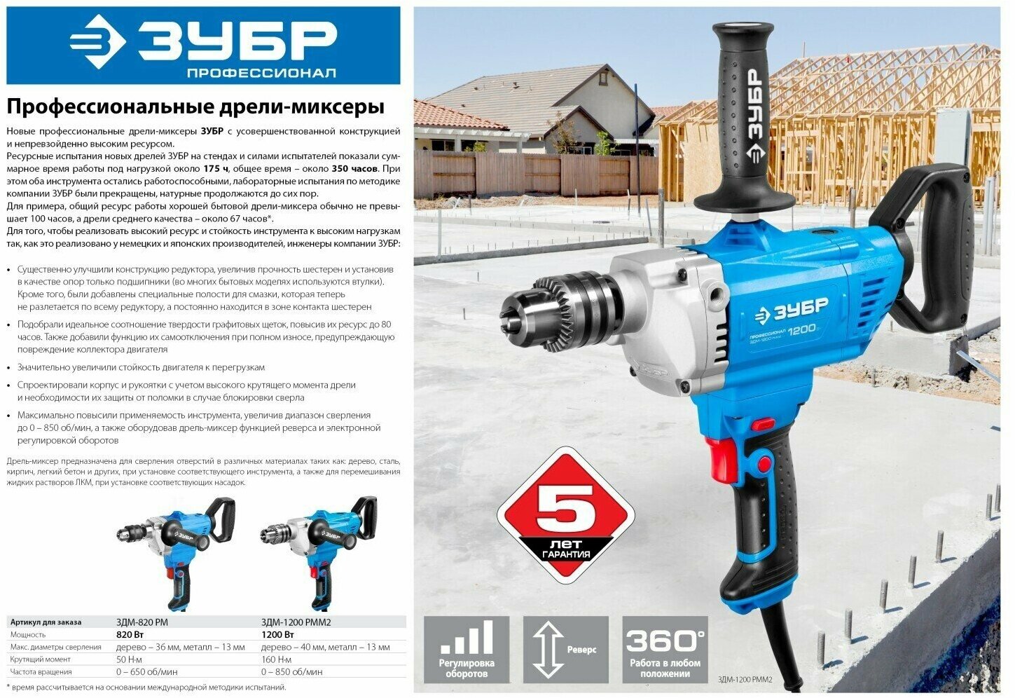 Дрель-миксер Зубр ЗДМ-820 РМ реверсивная