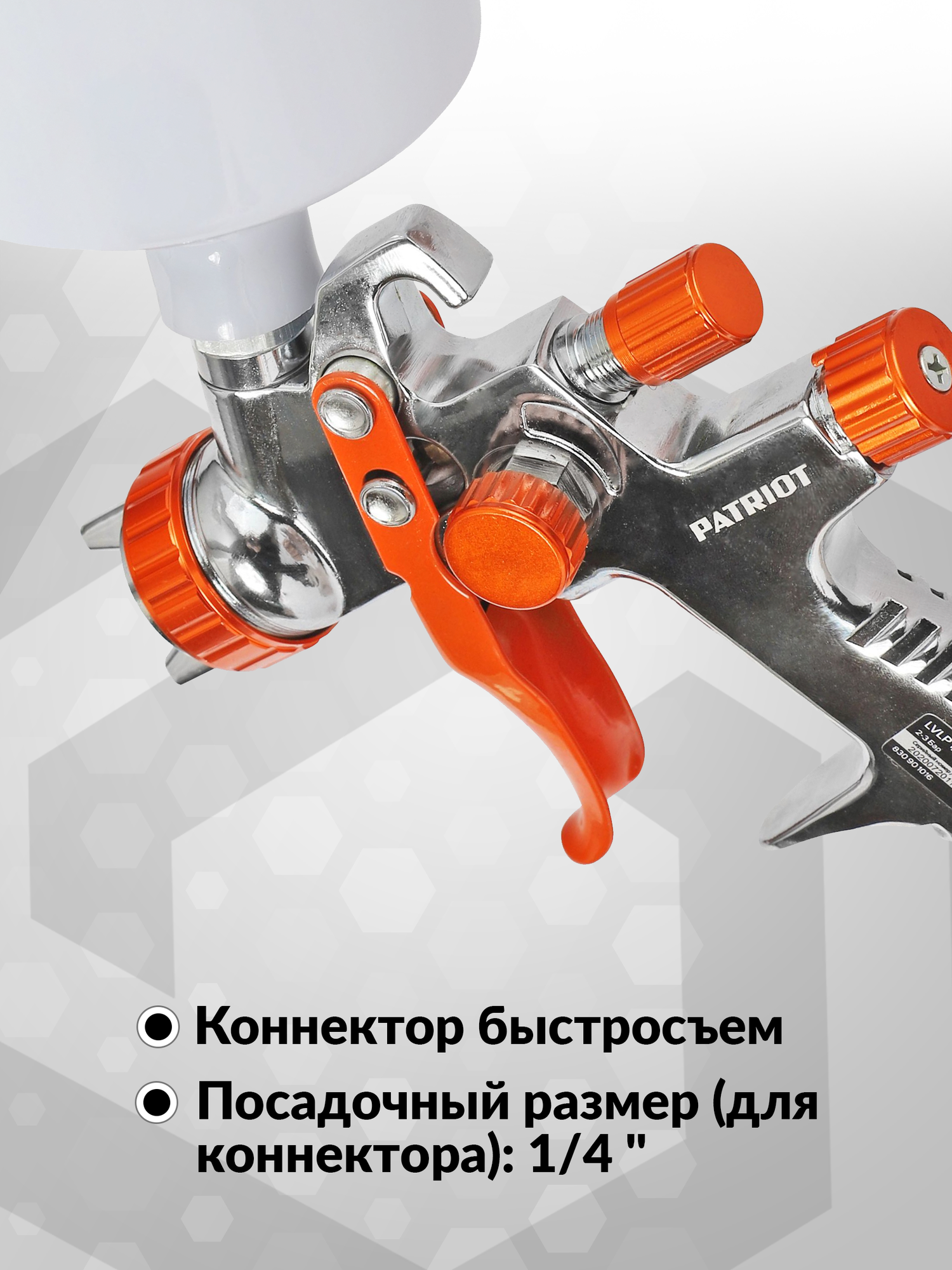 Профессиональный пневмокраскораспылитель PATRIOT LVLP 1,2A / Краскораспылитель с бачком / Краскопульт пневматический