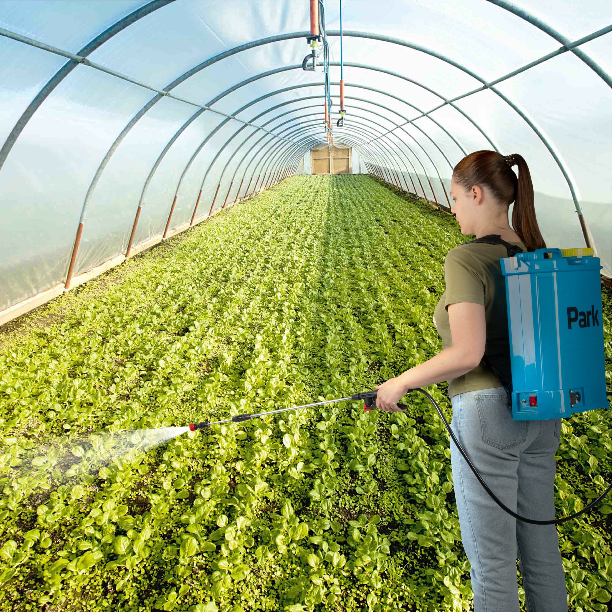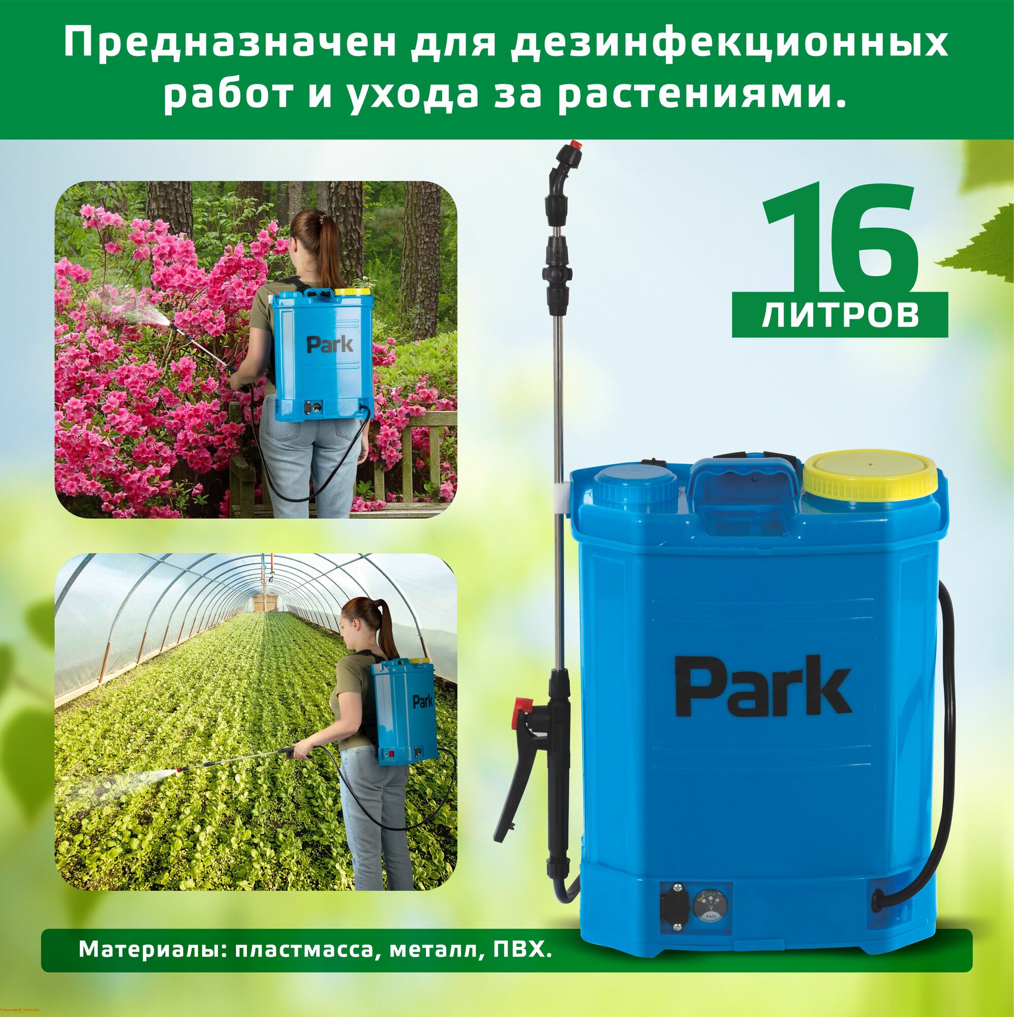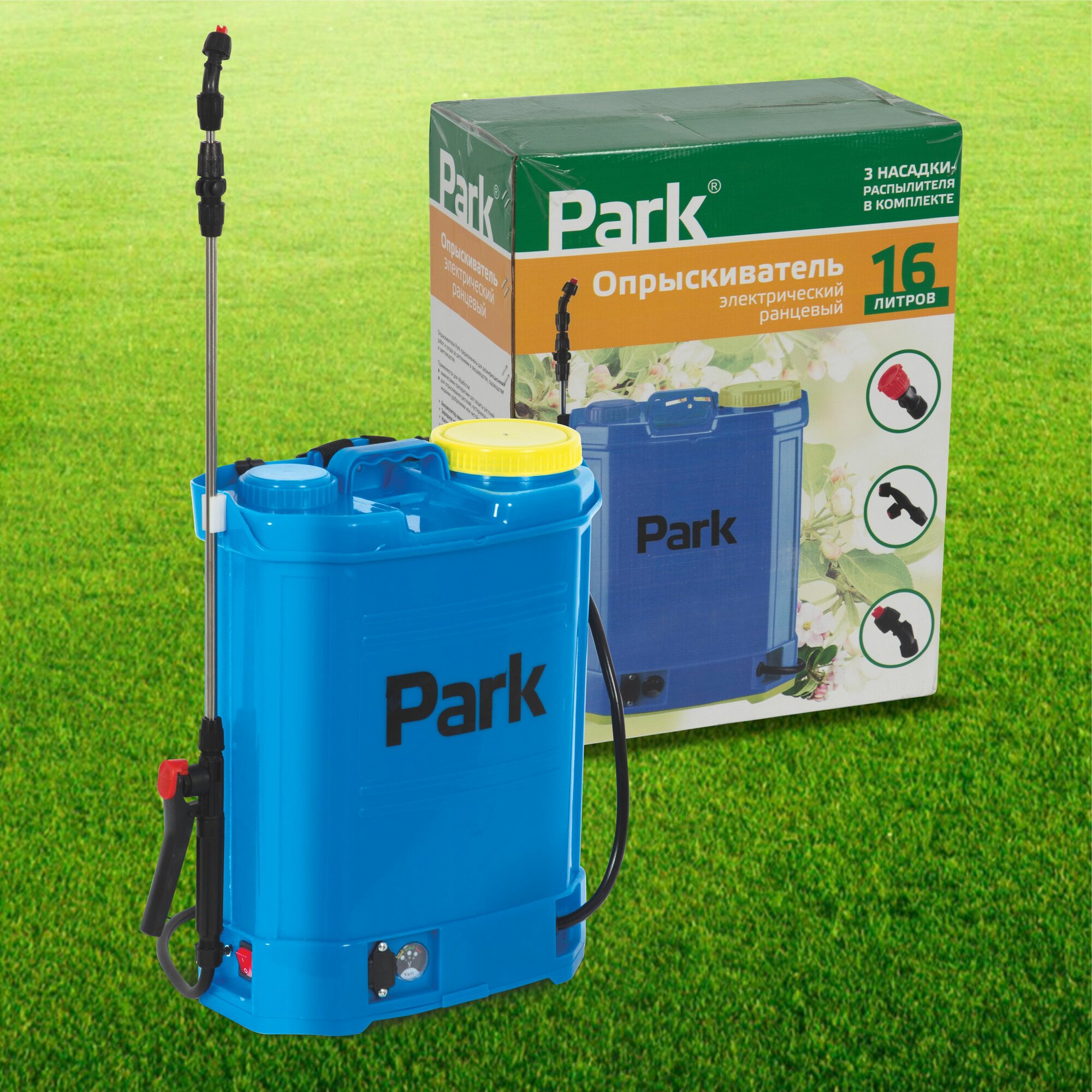 Опрыскиватель Park 006441, ранцевый, электрический, 16л, голубой