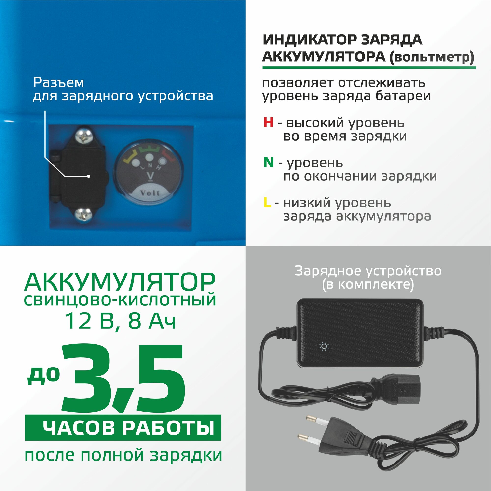 | Емкость аккумулятора | 8 А·ч |
