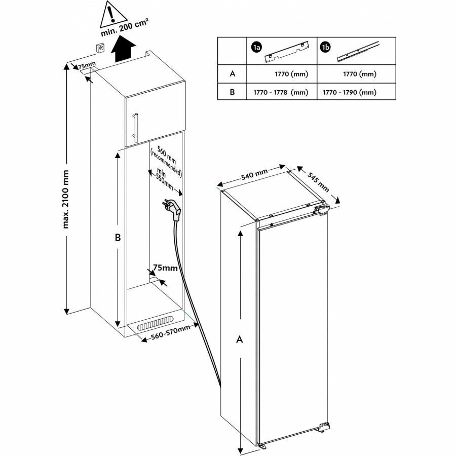 Встраиваемая морозильная камера, 197л, No Frost, 41 дБ, жеское крепление, электронное управление, Габариты (ШxГxВ), см: 54x54,5x177