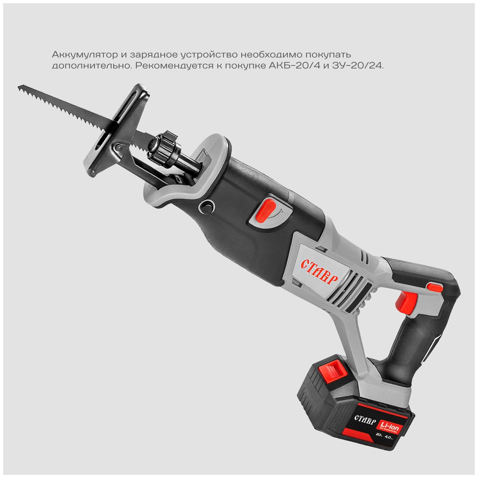 Пила сабельная аккумуляторная 20В 0-3000 ХОД/МИН 20ММ ХОД пильн.полотна 20В серия без аккум ставр