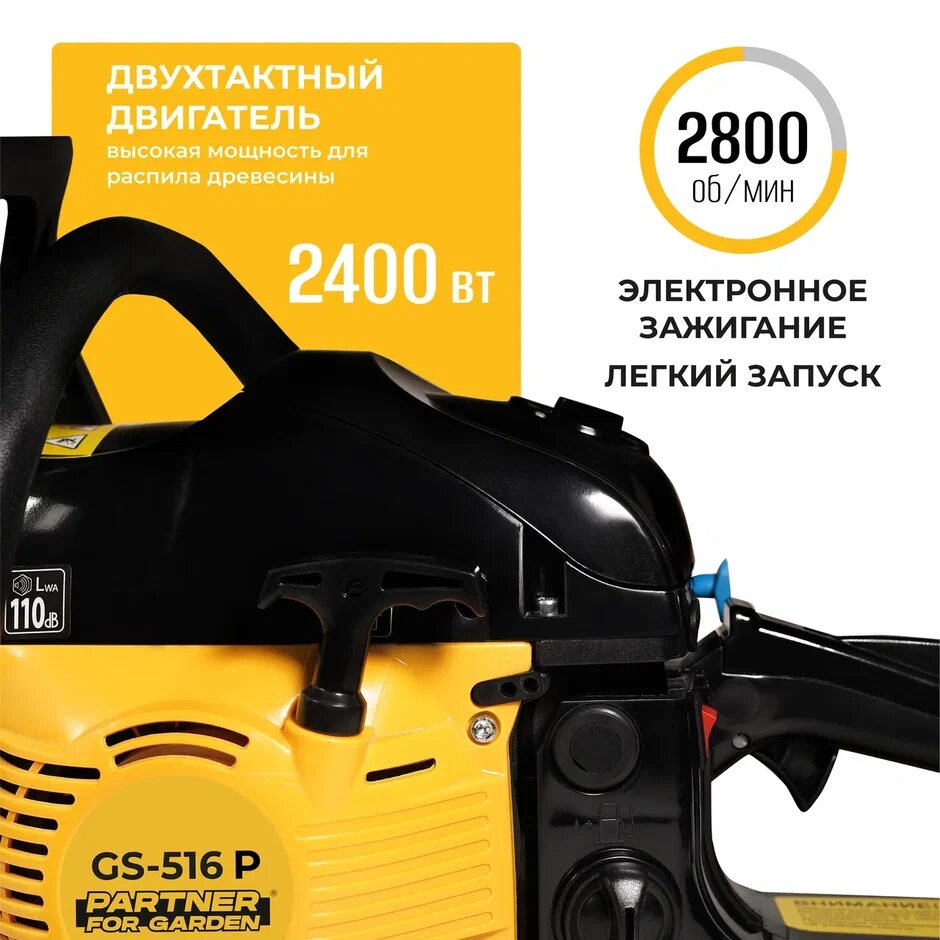 Бензопила цепная Partner for Garden GS 516 бензиновая ( 3,5 л.с, мощность 2,4 кВт, длина шины 16" - 40 см )