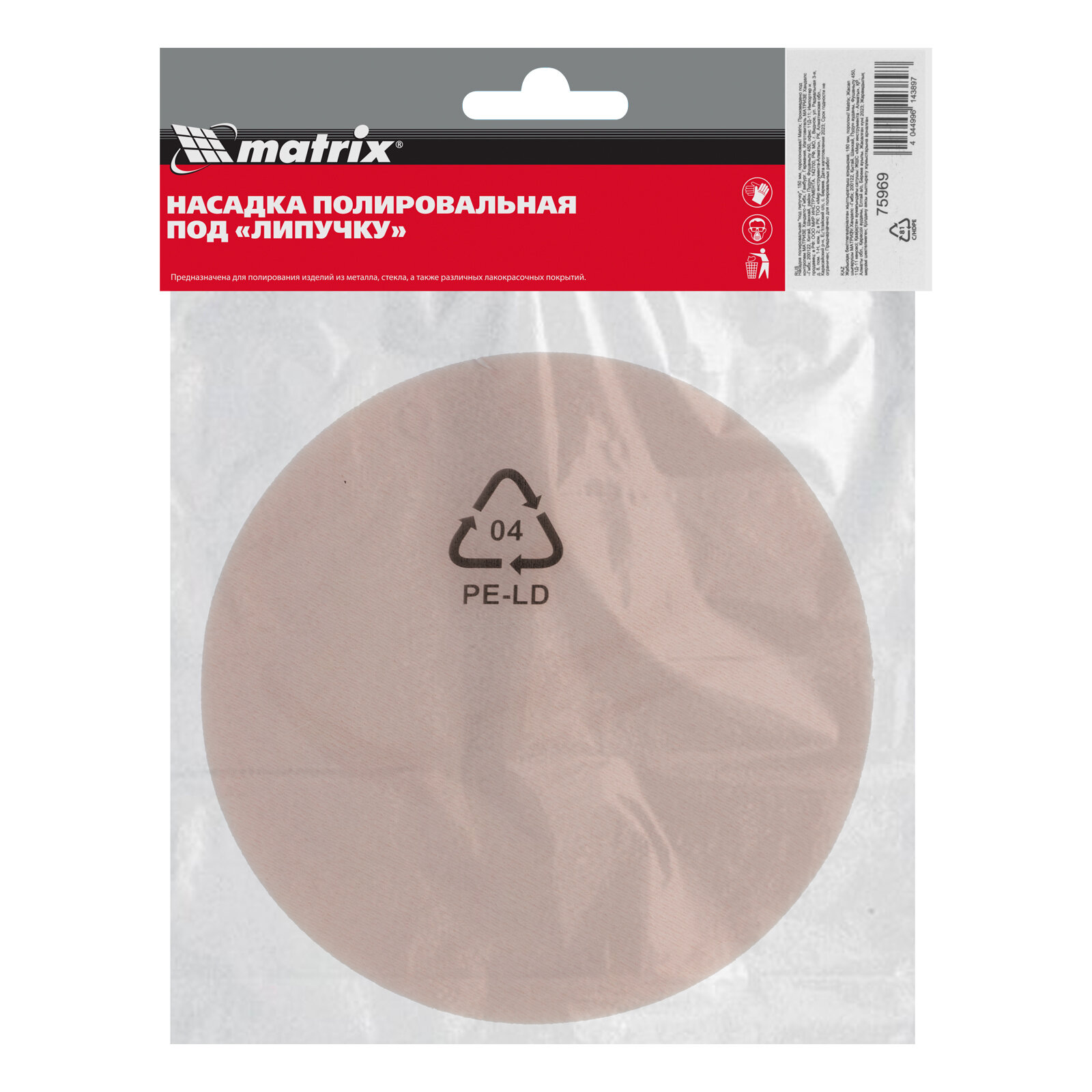 Насадка полировальная под липучку, 150 мм, Поролоновая Matrix EAN-13: 4044996143897