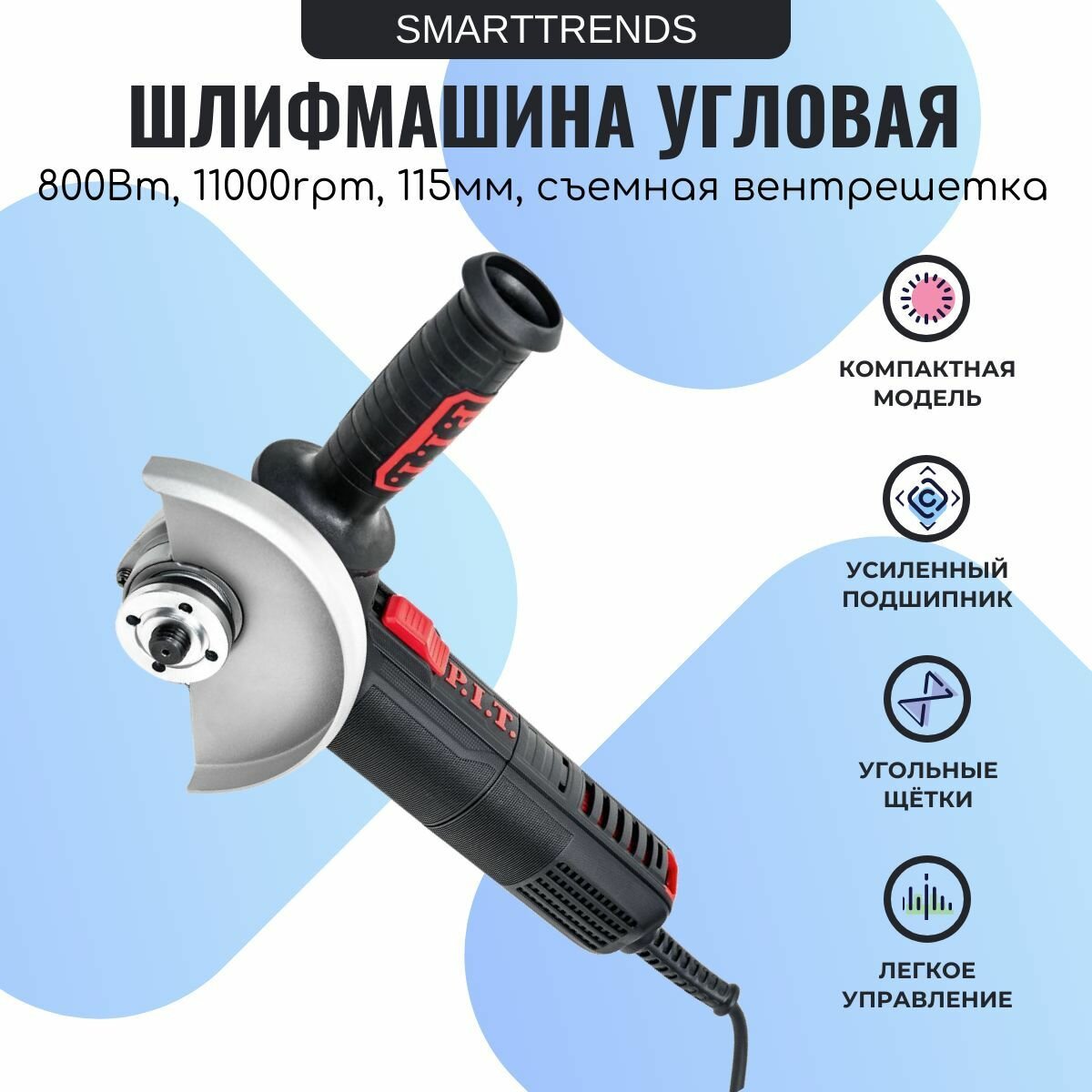 Купить Шлифмашина угловая P.I.T. PWS115-C (800Вт, 11000rpm, 115мм, съемная вентрешетка, коробка)